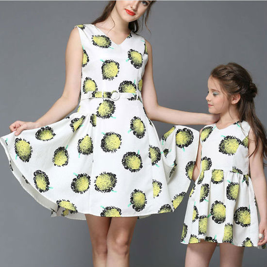 This parent-child maxi dress set is finely made of polyester. The sleeveless and V-necked design looks great on both adults and children. The white fabric with a printed yellow pattern flaunts a vibrant touch.