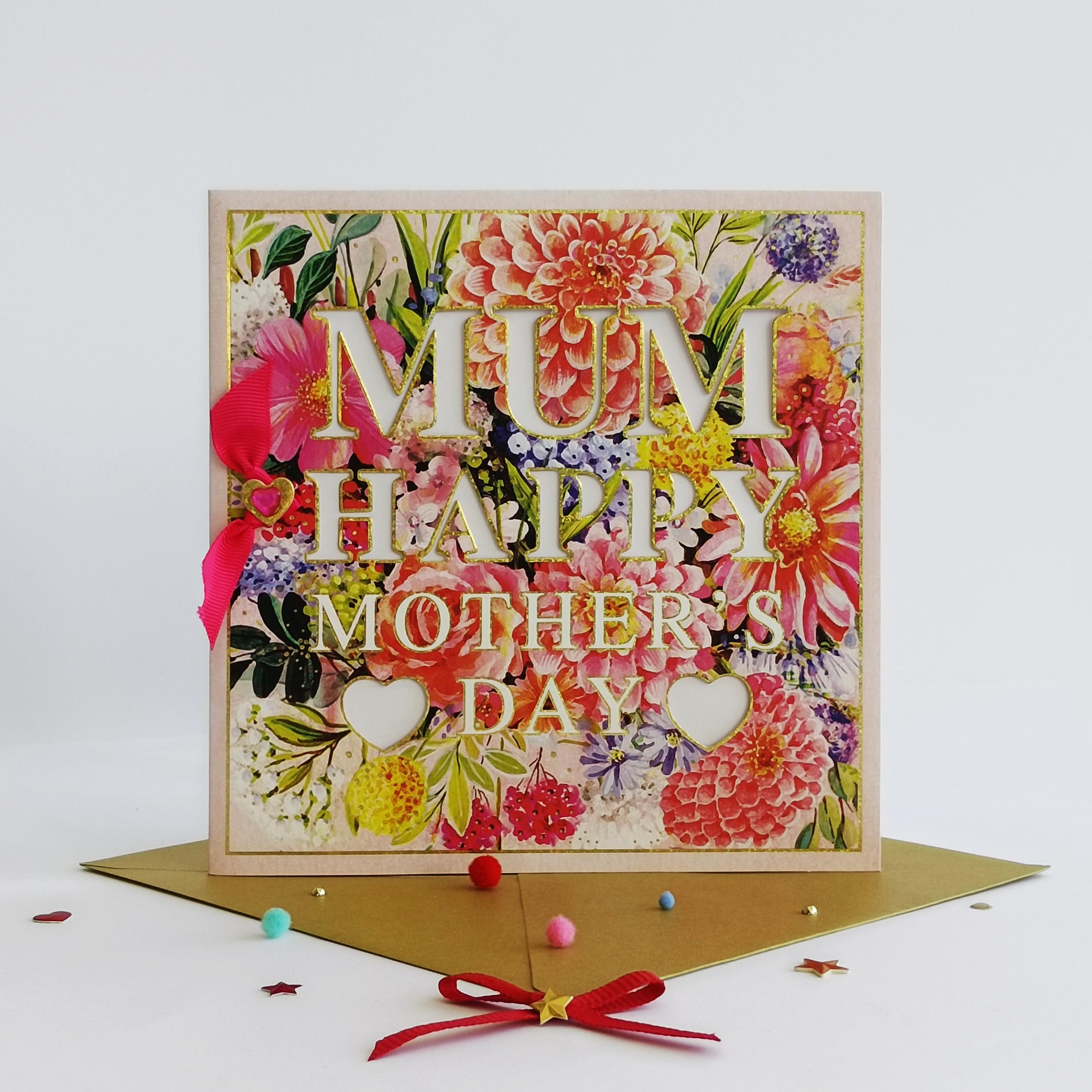 Finishing : die cut on P1 + foil + ribbon bow + foil tipon X 1pcs + pink heart gem X 1pcs