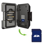 The home watch cam is designed to sense the motion of birds entering the camera’s field of view. Once the motion sensor is activated, the home watch cam wakes up for 20 seconds to take an average of 20 high quality, time stamped still photos that store on the 2GB SD card included with your home watch cam. After taking the photos the home watch cam goes back to sleep until another bird activates the camera again. This ensures that the home watch cam’s 4AA batteries that are included will last a long time.