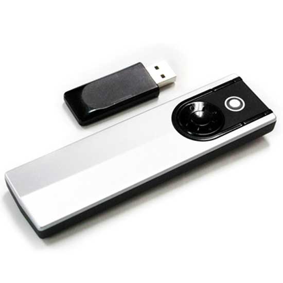 This wireless motion sensor presenter can transfer hand motion into 3D mouse motion. The installed software, aimMaster