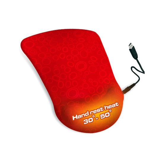 This is a USB mouse pad that is designed in bright red for an eye-catching look. This mouse pad stands out from the rest with its heating design on the hand rest. This unique mouse pad is ideal for winter use.