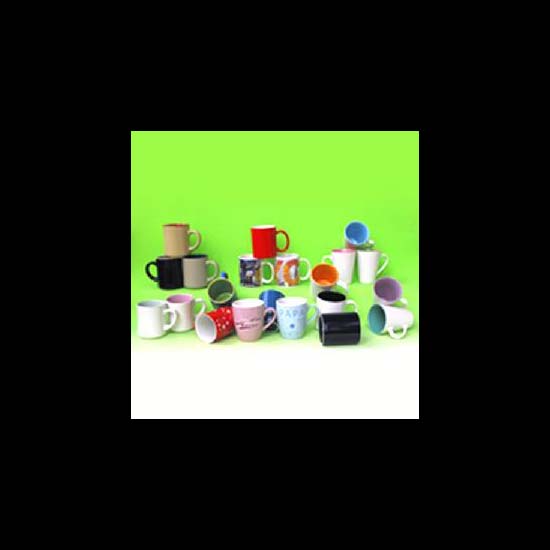 - Ceramic mugs and dye-sublimation mugs of various designs and patterns