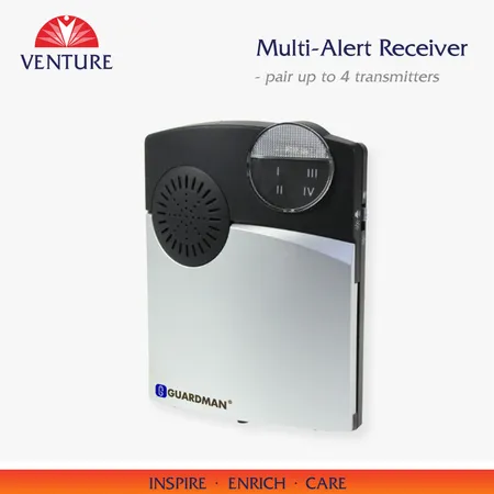 This Multi-Alert Receiver can pair with 4 sensors / transmitters, it delivers a bright light with ICON indicator and loud sound upon receipt an alert signal.
