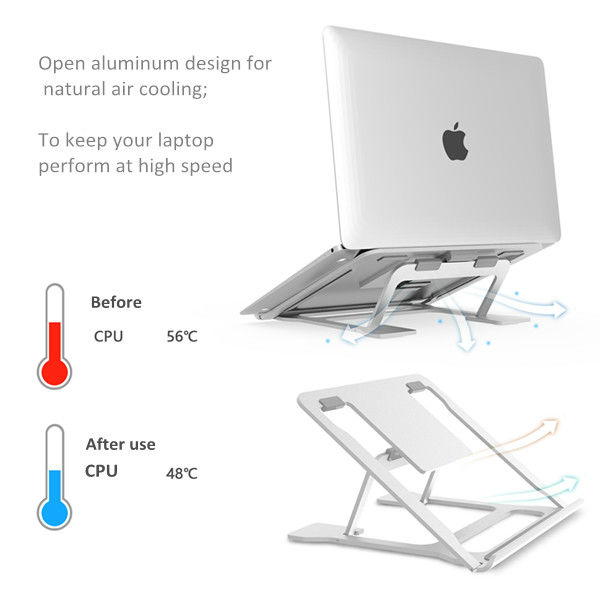 Open aluminum design for natural air cooling,to keep your laptop perform at high speed