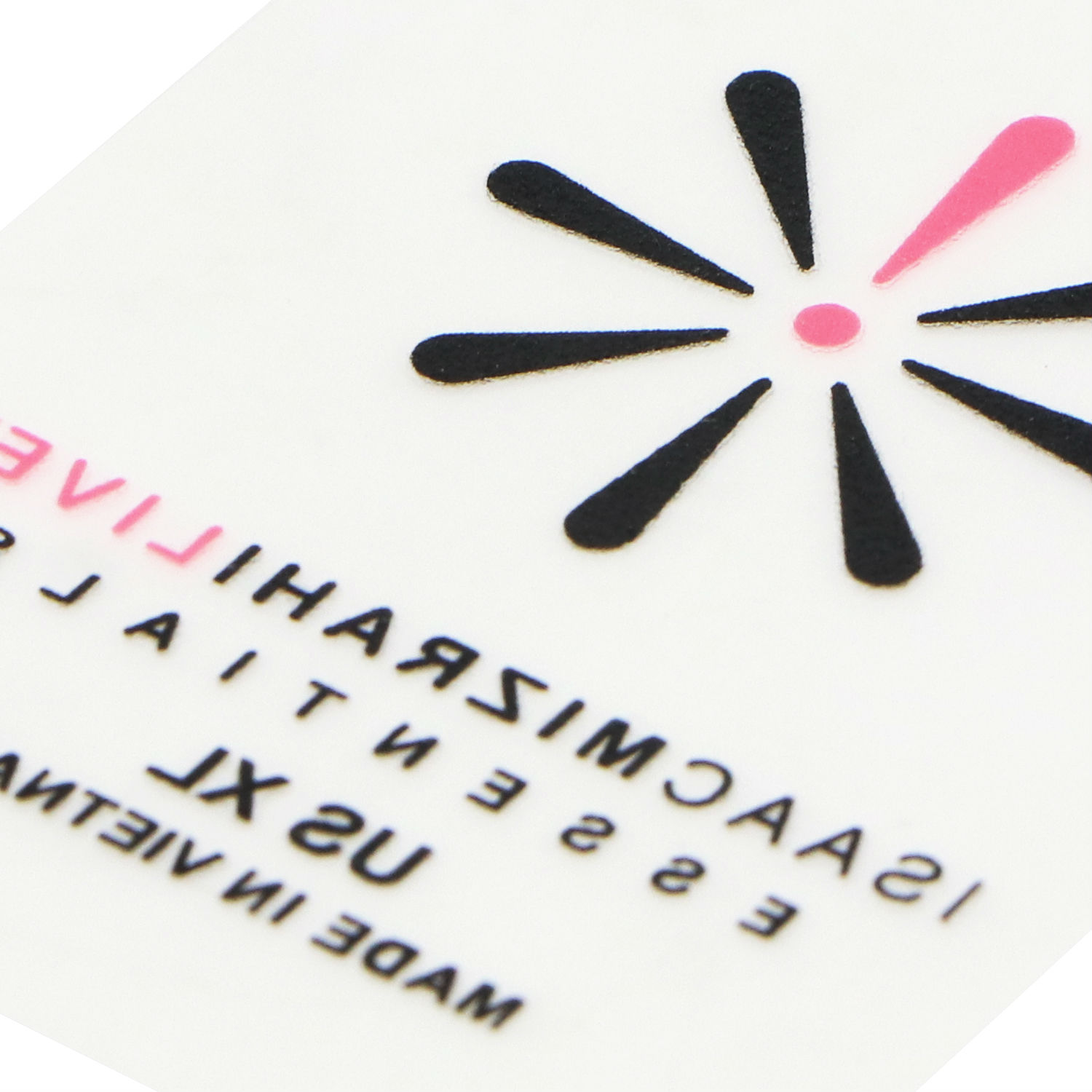 Transfer this heat transfer size label onto your newly designed clothing so your customers would not find the tags irritating and itchy. This transfer label includes the company logo, company name, size of the product and country of origin, so potential customers get to know all crucial information with a single glance. Iron this heat transfer label onto various garments to let customers enjoy an irritation-free wearing experience.