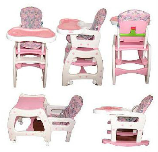 High Chair could be combined to be writing table. Suitable for baby after 3 years old. You will find a new product after install the rocking horse accessories.