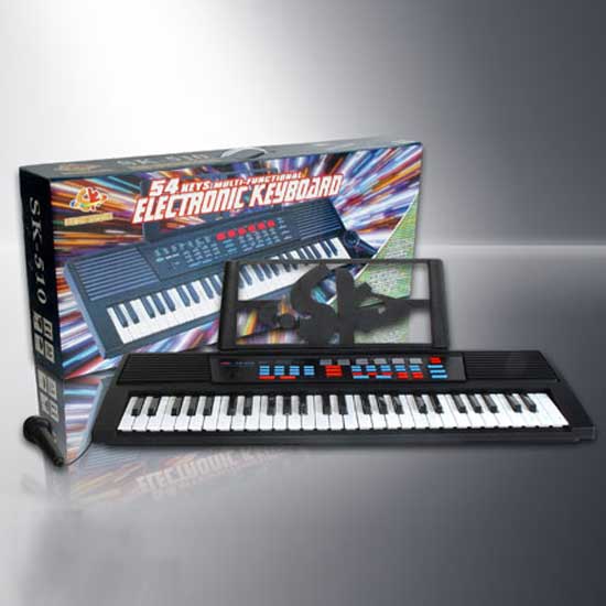 This is a multifunctional keyboard with a 54-key design. This AC-powered musical keyboard is designed with a music-sheet stand, a microphone jack and a pair of stereo speakers. It is ideal for home use.