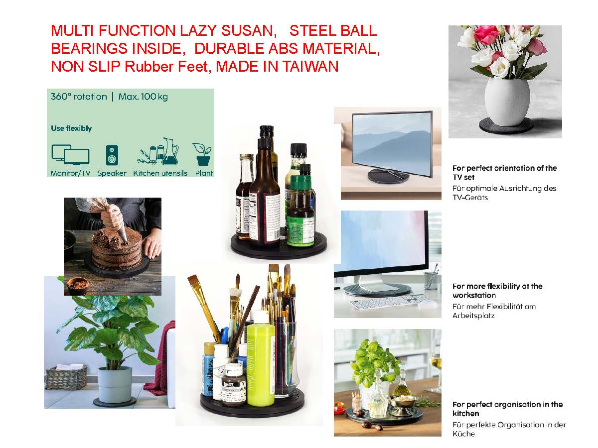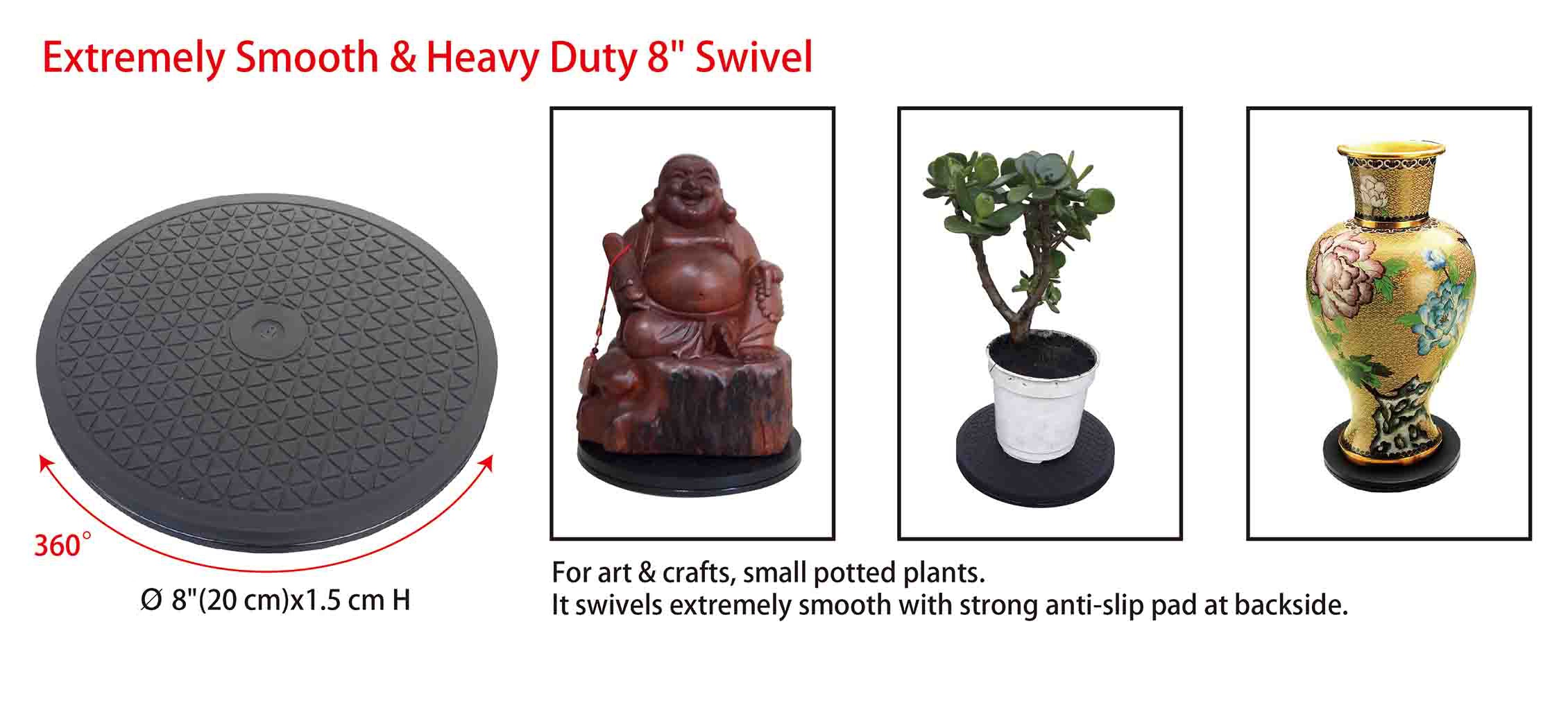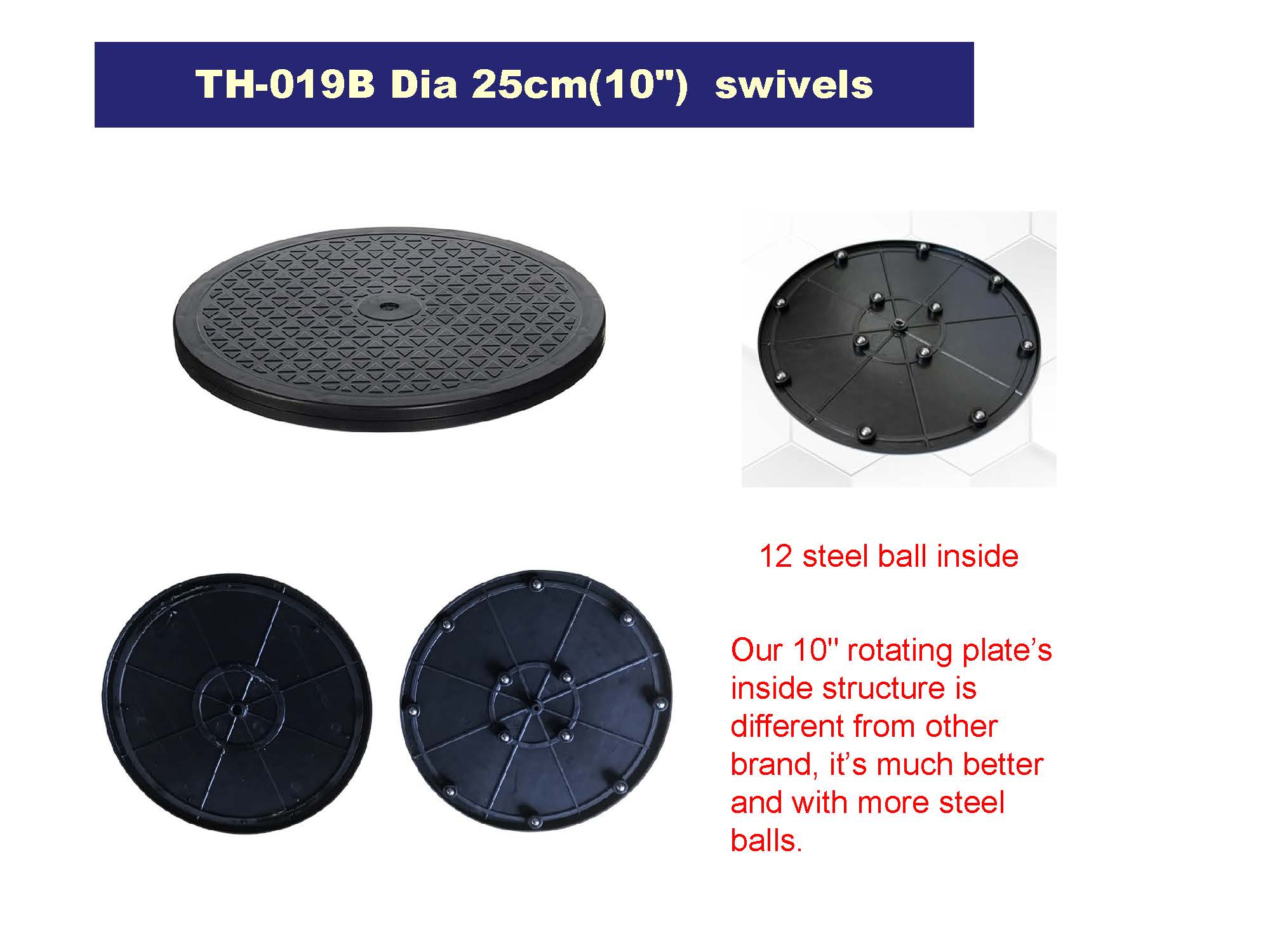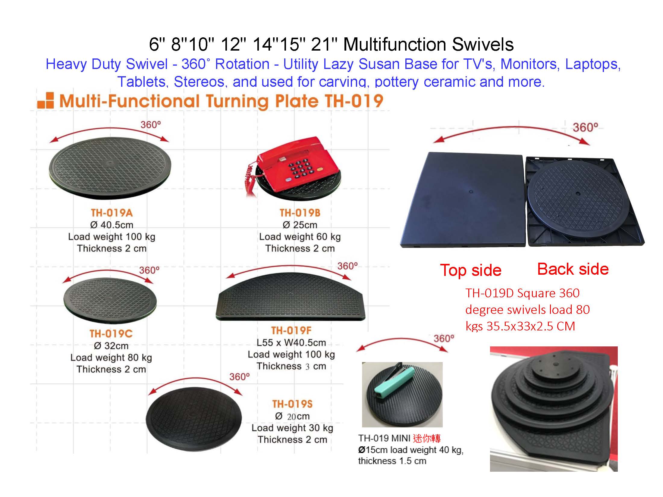 We are factory in Taiwan for more than 40 years, produce a series of turning table(7 size), 6" 8"10" 12" 14"15" 21" Multifunction Swivels
