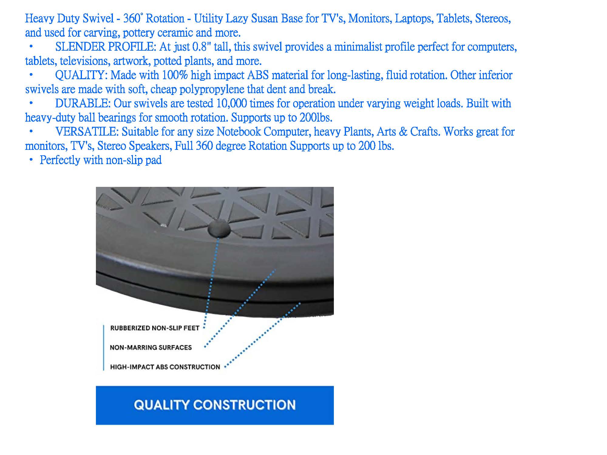 Heavy Duty Swivel - 360˚ Rotation - Utility Lazy Susan Base for TV's, Monitors, Laptops, Tablets, Stereos, and used for carving, pottery ceramic and more.