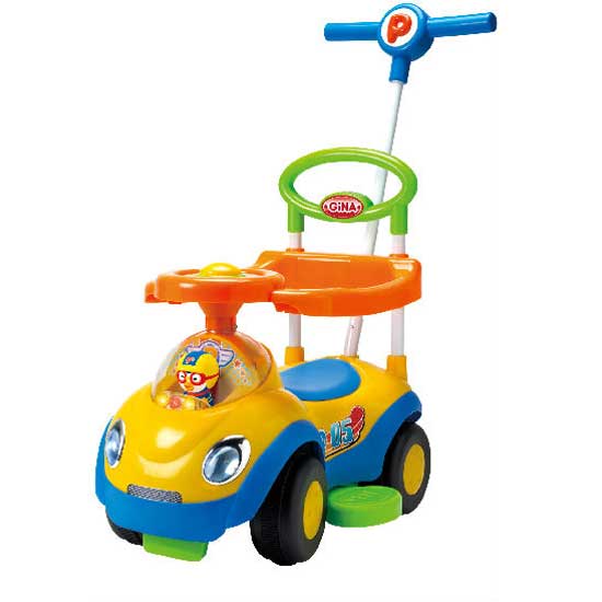 Shown here is a multifunction ride-on car with an adjustable back handle. With a smart design and sturdy structure, kids can drive it safely both indoors and outdoors. The versatile ride-on car can also generate pleasant lighting and music effects.