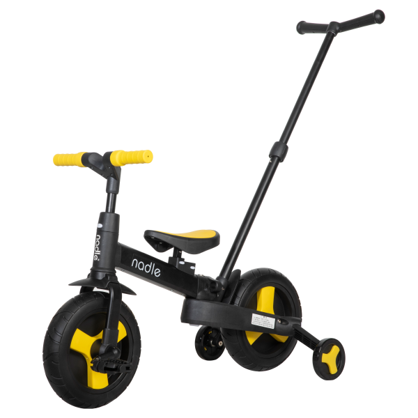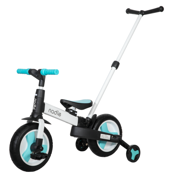 This versatile product combines four different riding options all in one: a push tricycle, balance bike, pedal trike, and balance bike. It's the optimal choice for children in different growth stages, adapting to their changing needs and skills. Constructed with aluminum alloy pipe and reinforced nylon, the bike ensures robust durability with a lightweight touch, perfect for little hands to maneuver.