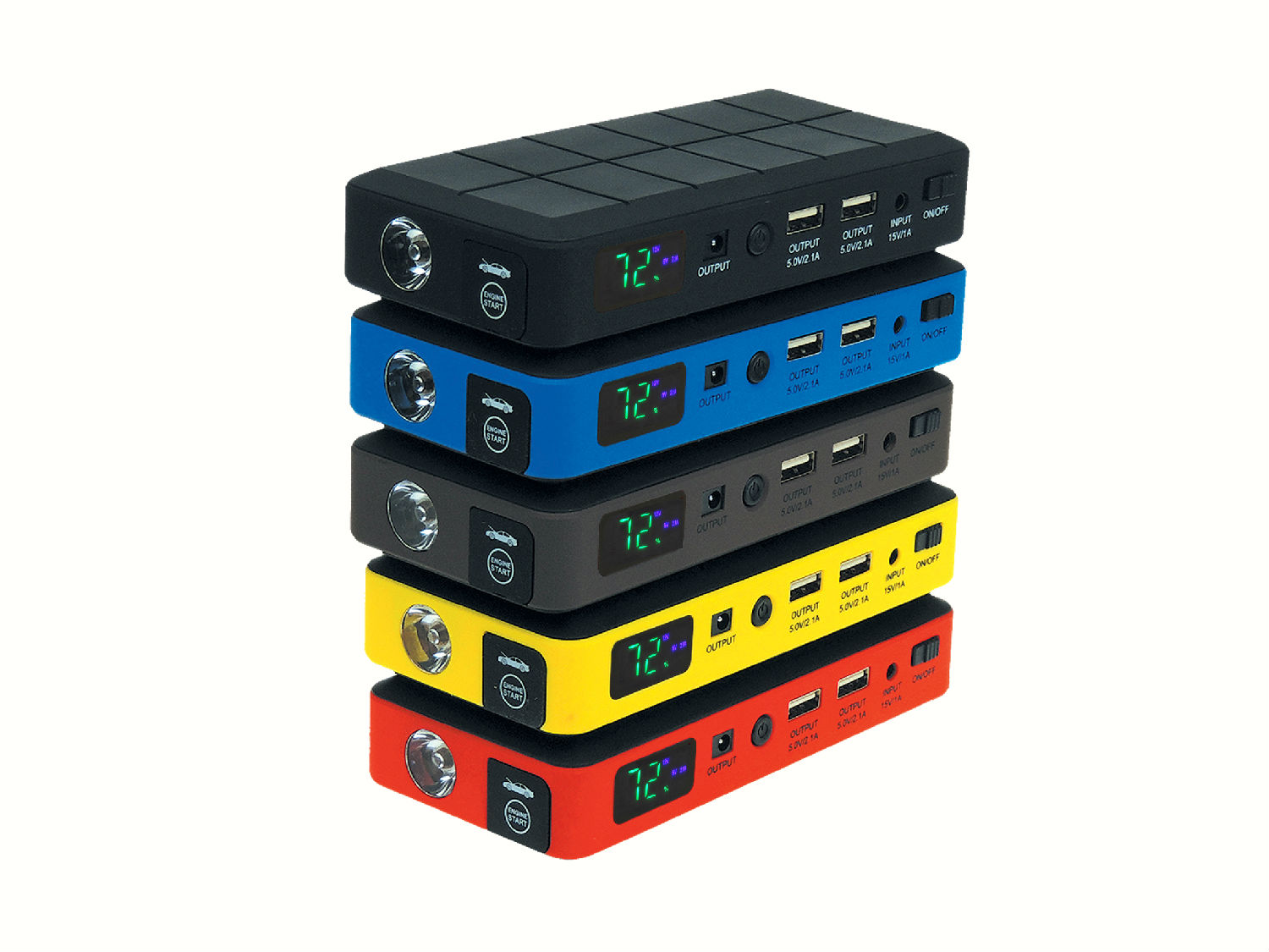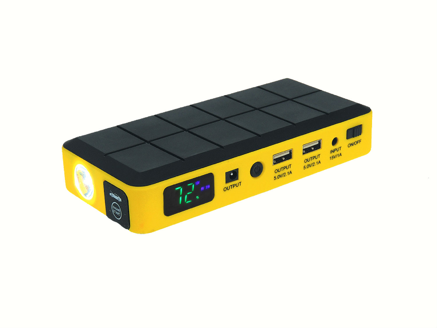 Support 12V car emergency jump start with a flashlight for torch and SOS function.