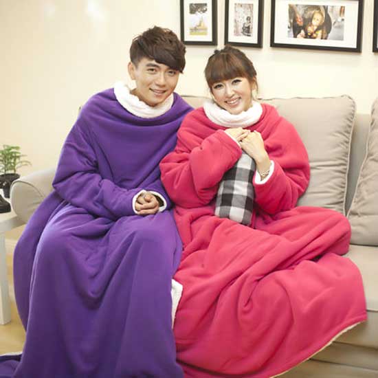This is an autumn and winter warm blanket made of anti-static fleece fabric. It is designed with a pair of sleeves for added convenience. This well-made blanket is available in assorted colors for you to choose from.