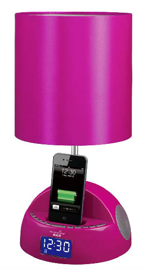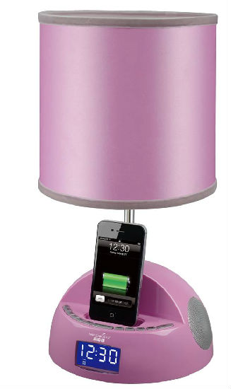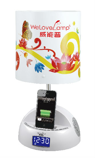 This showcased multifunctional table lamp comes with a mini iPhone dock for music playback and quick recharge. Its built-in speakers are engineered to give crystal-clear sound. This table lamp is a great desktop decoration with added versatility.