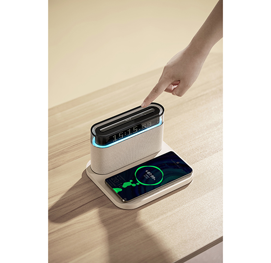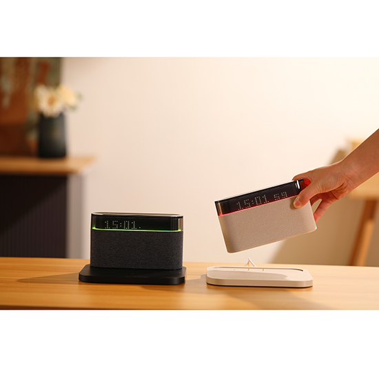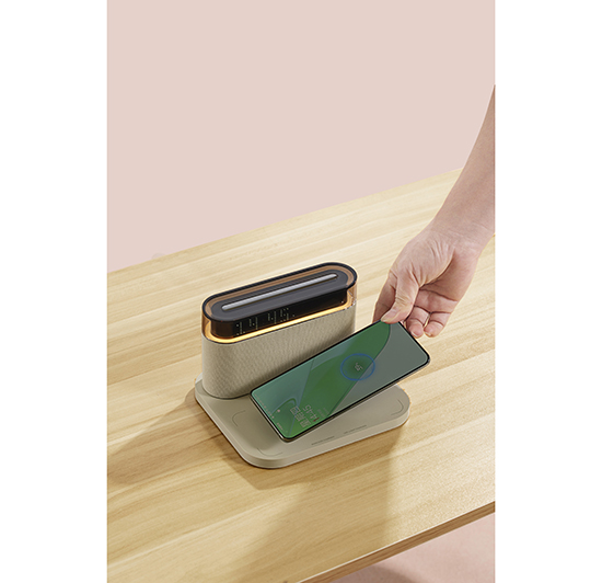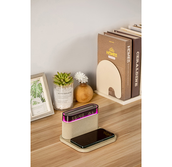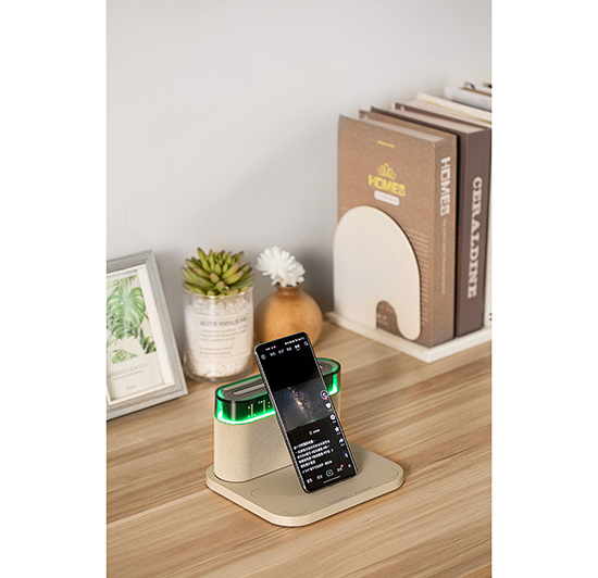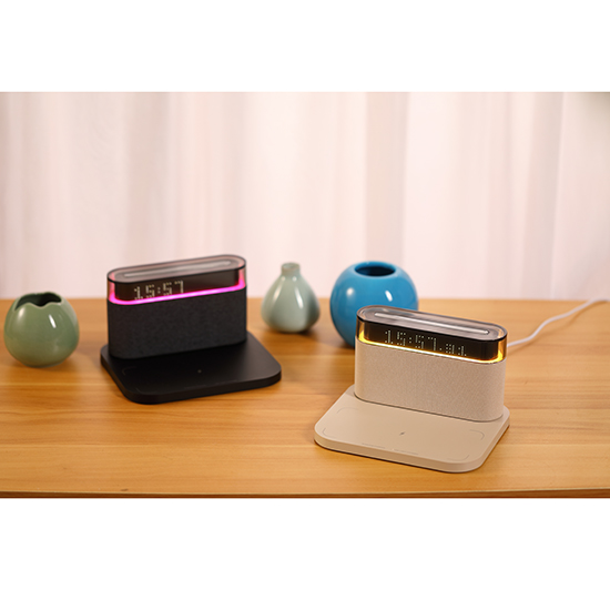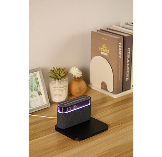 FEATURES:Night light;Clock alarm;Wireless fast charge.;Bluetooth Speaker;Charging distances<6mm.