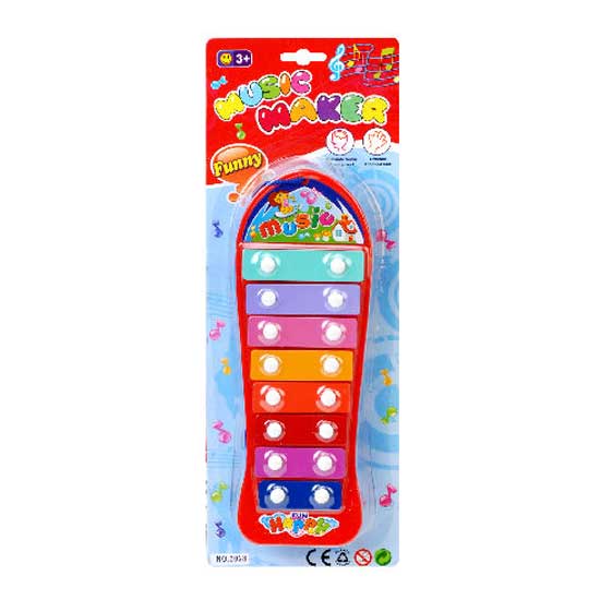 Displayed is a play set that features a small colorful keyboard for making music. Simply press any buttons to hear interesting sounds! This music play set is fun and easy to play with.