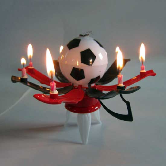 This is a musical birthday candle designed with an attractive football in the center. It features a sophisticated structure with a sturdy stand and various branches which are designed for holding candles. This unique candle surely is a great choice for offering a surprise to your beloved god of longevity.