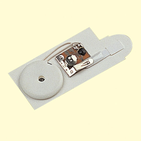 Displayed here is a musical module with a slide switch. It provides reliable performance in adverse conditions. This musical module is designed for greeting cards.