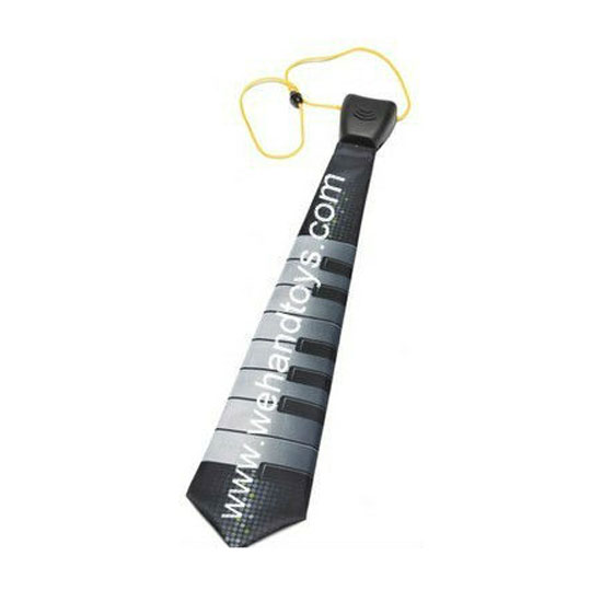 This is a musical necktie with a piano design. It features 8 piano keys for you to play piano music. The musical necktie is fitted with an automatic power off system for power saving.