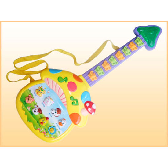 Displayed here is a musical toy that is designed with a guitar appearance. This musical toy is attached with a sturdy shoulder strap for easy carrying. Let children enjoy the fun with this adorable musical toy.