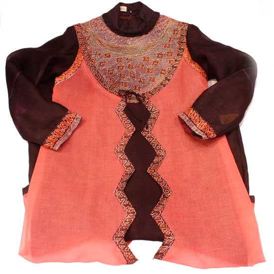 Displayed is a Muslims' gown which is delicately made in West Java. It is ornamented with skillful and elegant contemporary batik patterns. The loose cut also promises satisfactory comfort.