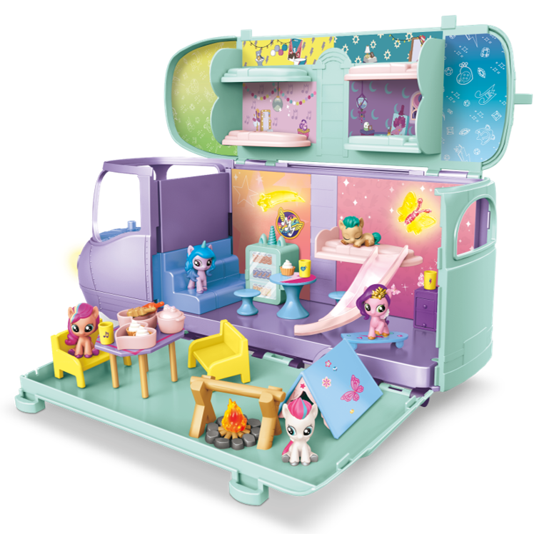 和小马宝莉们一起驾驶魔法巴士外出露营吧,这里有美丽的草坪、帐篷和篝火……