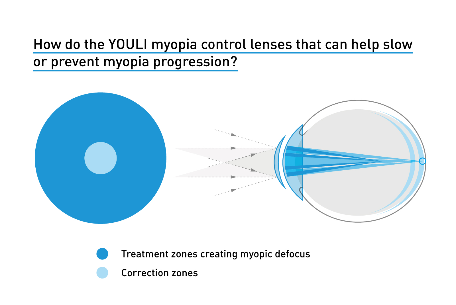 (1) How do the YOULI myopia control lenses that can help slow or prevent myopia progression? Myopia defocus control technology is the answer.