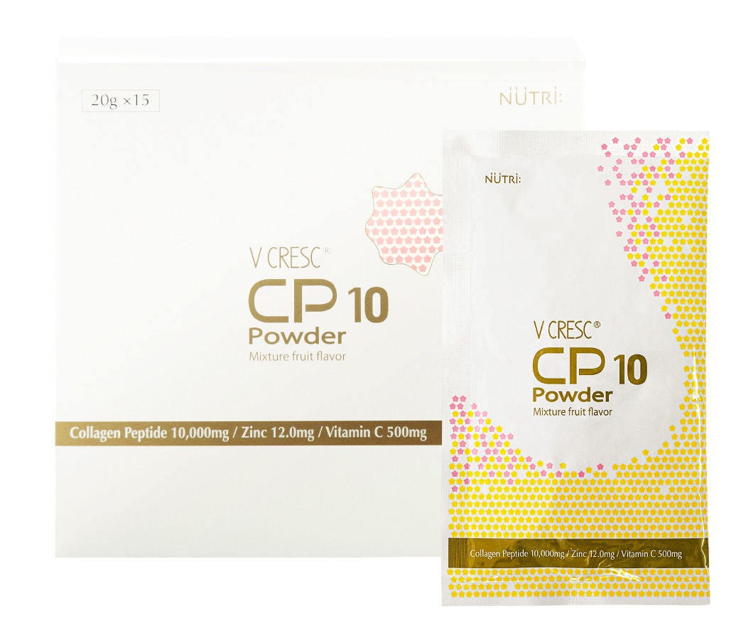 CP10膠原蛋白果汁蘊含10,000毫克(10克)膠原蛋白肽及12種維他命及礦物質,一日一支足夠補充成年人一日所需的維他命及礦物質。其豐富的10,000毫克(10克)膠原蛋白肽,500毫克的維他命C及12毫克的鋅可幫助皮膚修復,在日本應用於壓瘡的營養管理,亦是日本首個獲得標示許可作為「可用於褥瘡患者飲食療法」的食品,現時日本國內獨此一家。