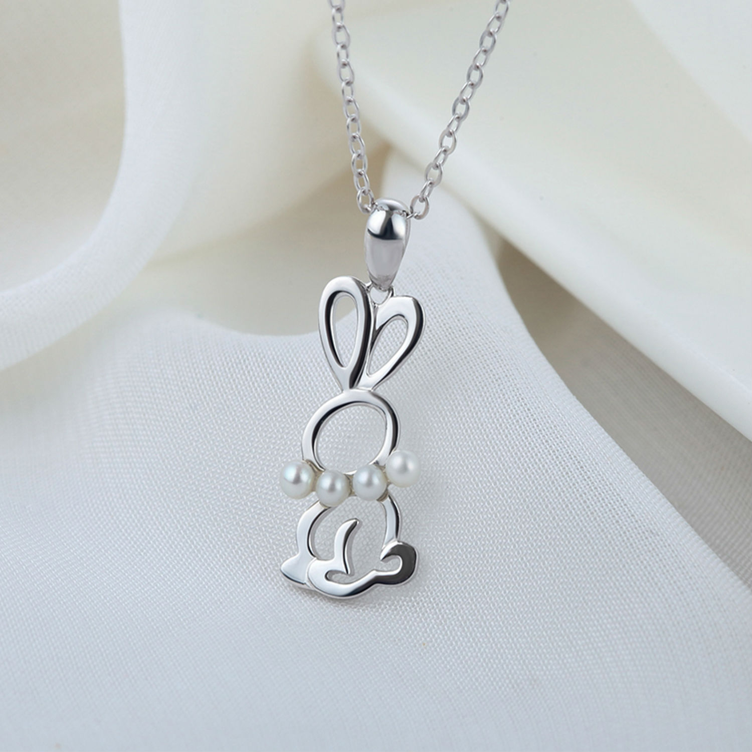 Natural Freshwater Pearl Pendants, 925 Sterling Silver Creative Design Rabbit Jewelry