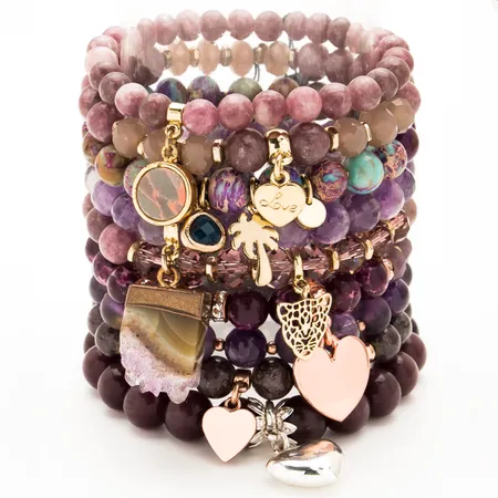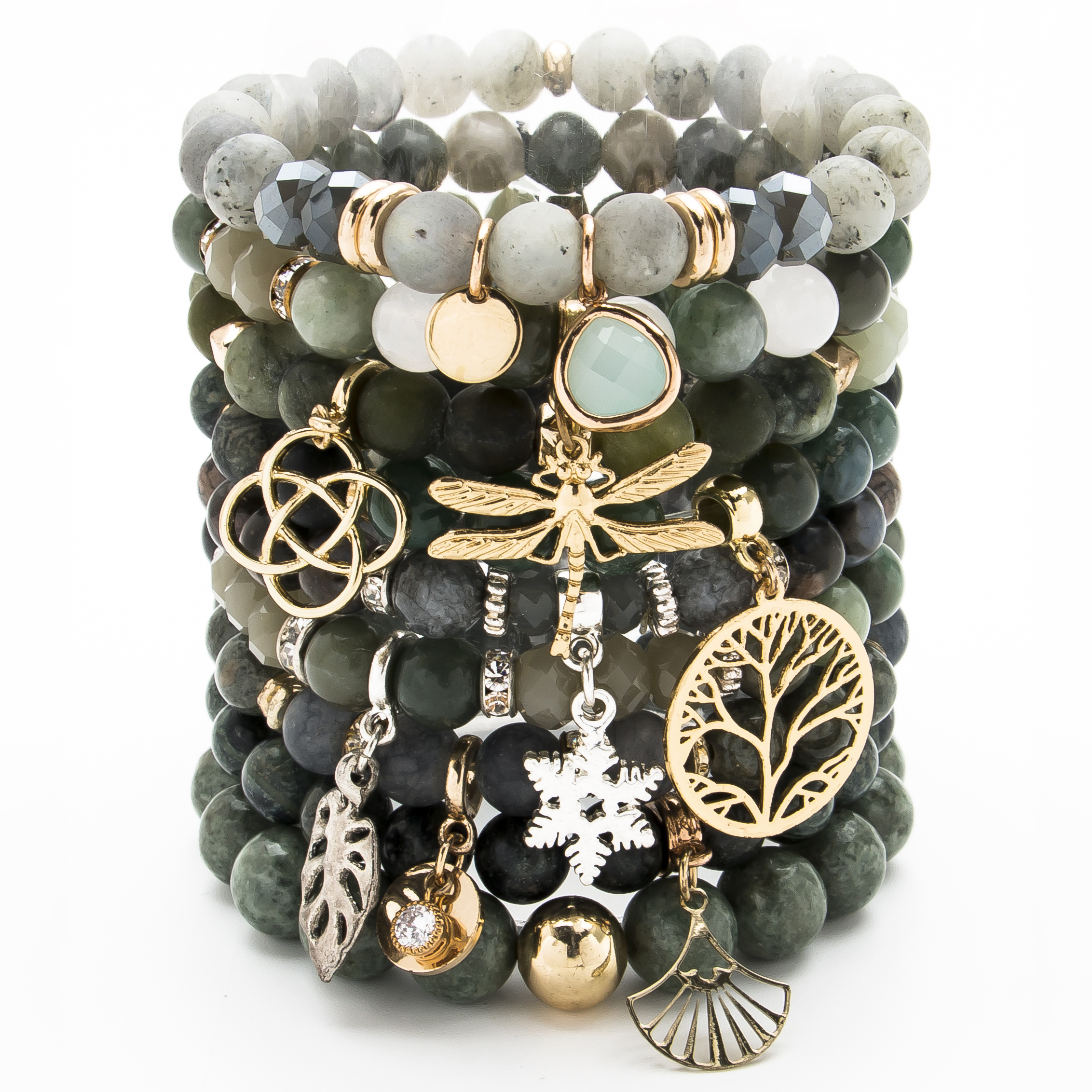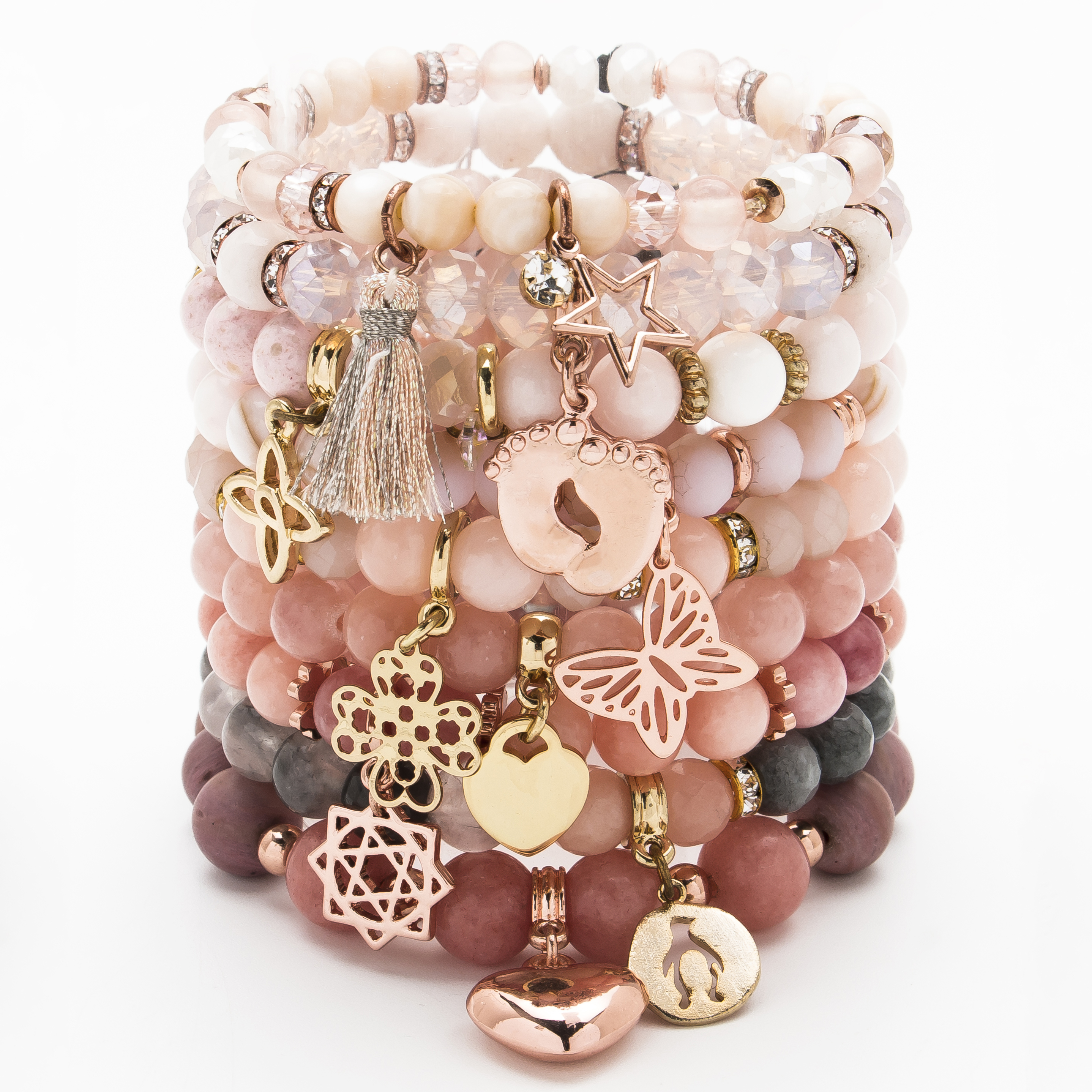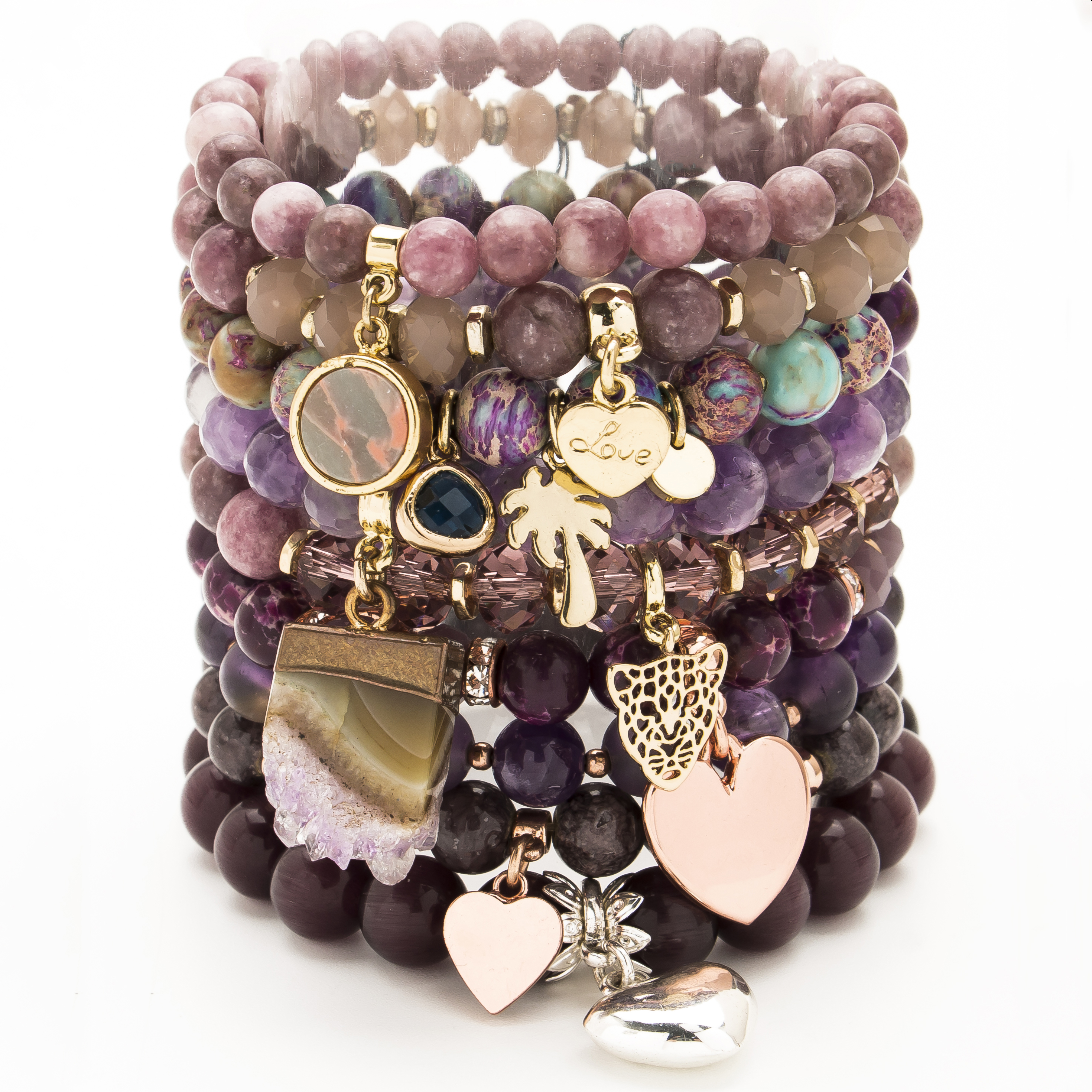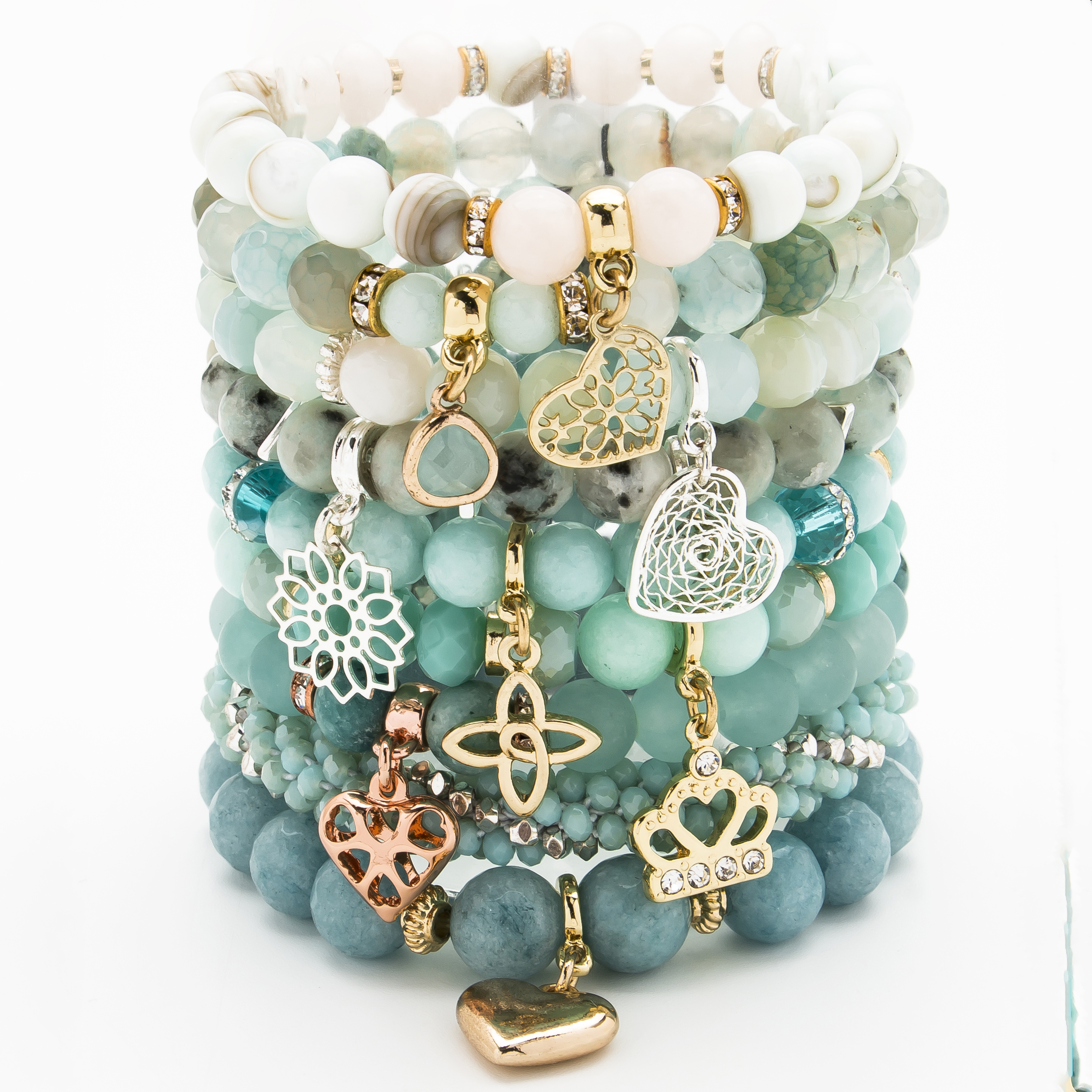 Natural Semi-Precious Stone with Charm Stretch Bracelets