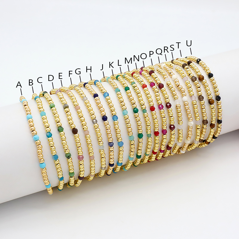 Natural Stone Beads With Gold Plated 3mm Brass Beads Bracelet