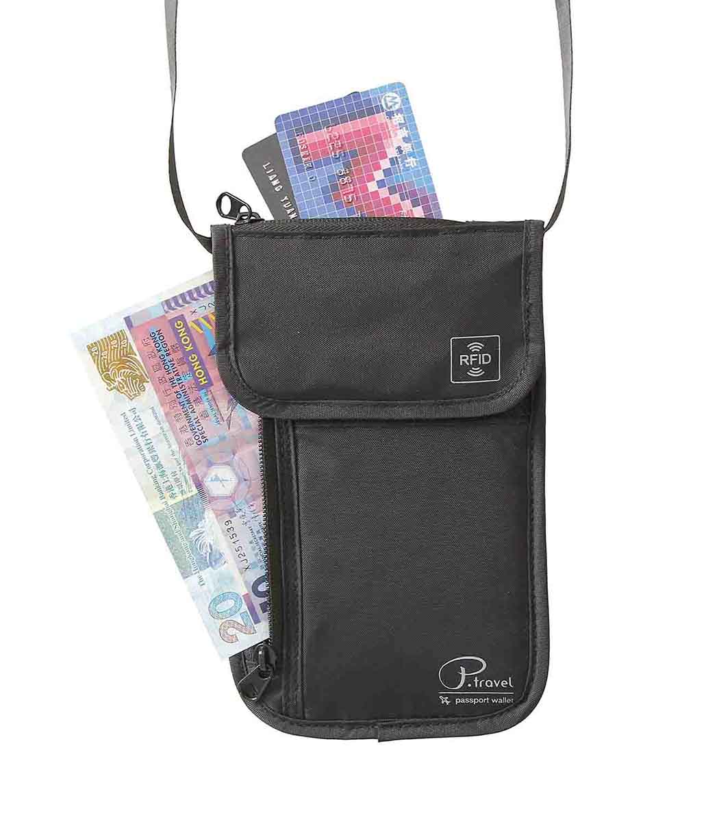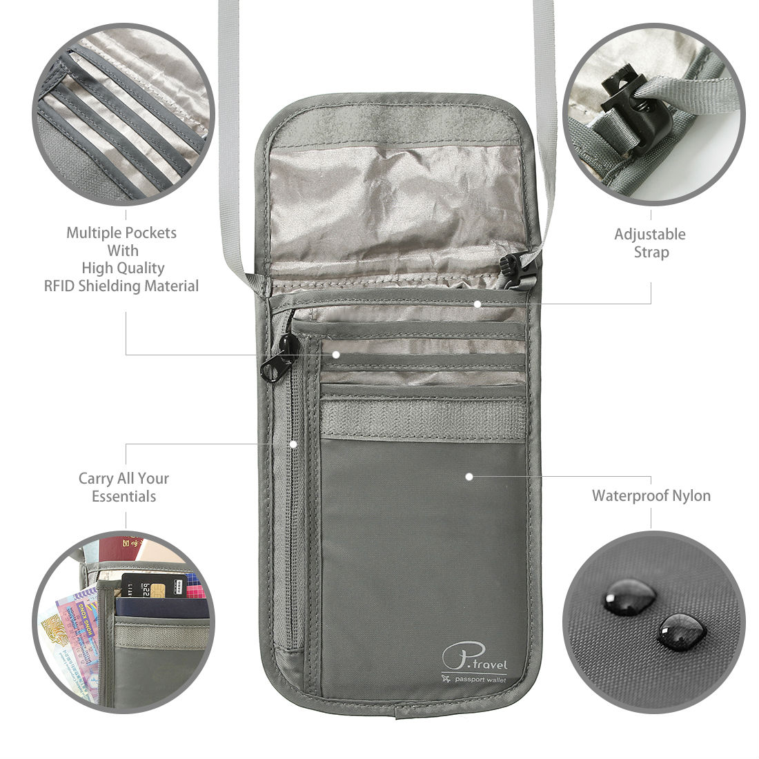 Keep all your valuables safe on-the-move with this neck wallet. Incorporated with RFID blocking technology, the compact travel wallet features a zippered pocket and four slip pockets in a row for stashing all your credit cards and large bank notes safe and securely, while its slim design allows it to stay completely invisible underneath your clothes.