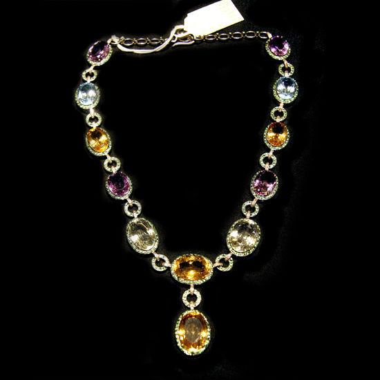 Necklace Silver & Gold with Citrine Amethyst Green Amethyst Savorite and Diamonds