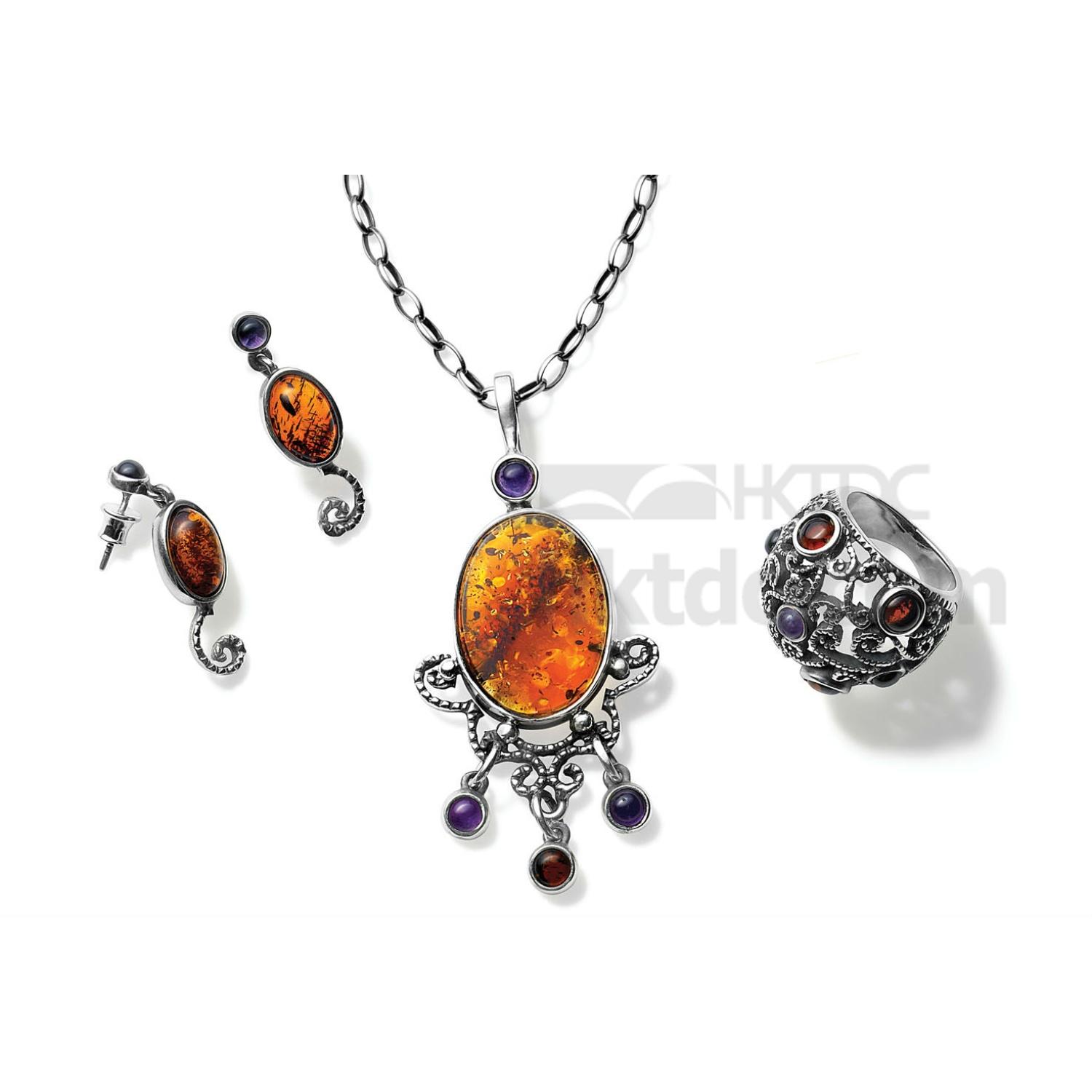 Tears of Time Amber Set: "In the Garden" Collection. Amber gives energy that is calming and revitalizing at the same time. Amethyst sooths mind and soul.