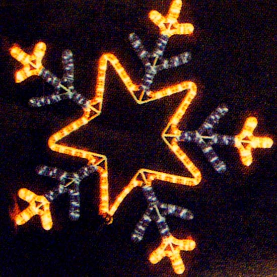 This is a beautiful neon light in the shape of snowflakes. The neon light gives off warm yellow light, creating a festival atmosphere. The light is suitable for outdoor or indoor decoration in winter.