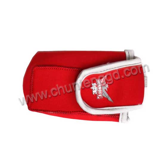 This stylish cellphone bag features a sharp red exterior with white trimming. Crafted of soft neoprene, the cellphone bag is durable and shock absorbent. The flap-over closure keeps your cellphone secure.