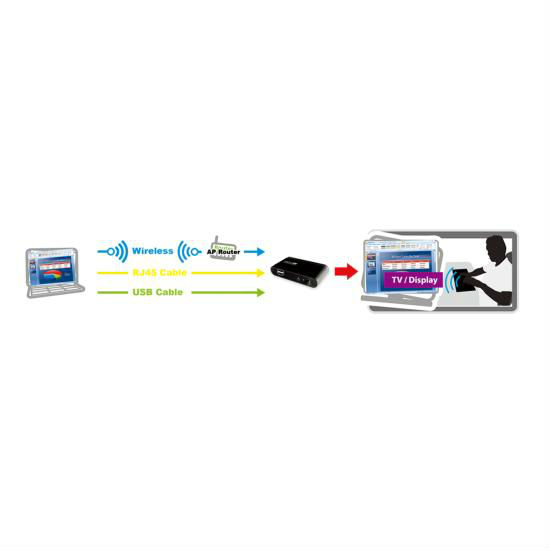 • Easily connect additional HDMI TV/monitor with notebook/desktopcomputer via Gigabit Ethernet port or USB 2.0 port.