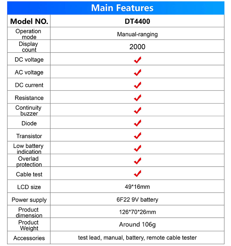 Network Multimeter with Cable Test New Item DT4400 Multitester Cable Check Tool