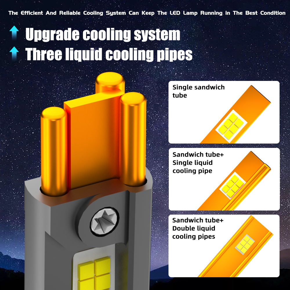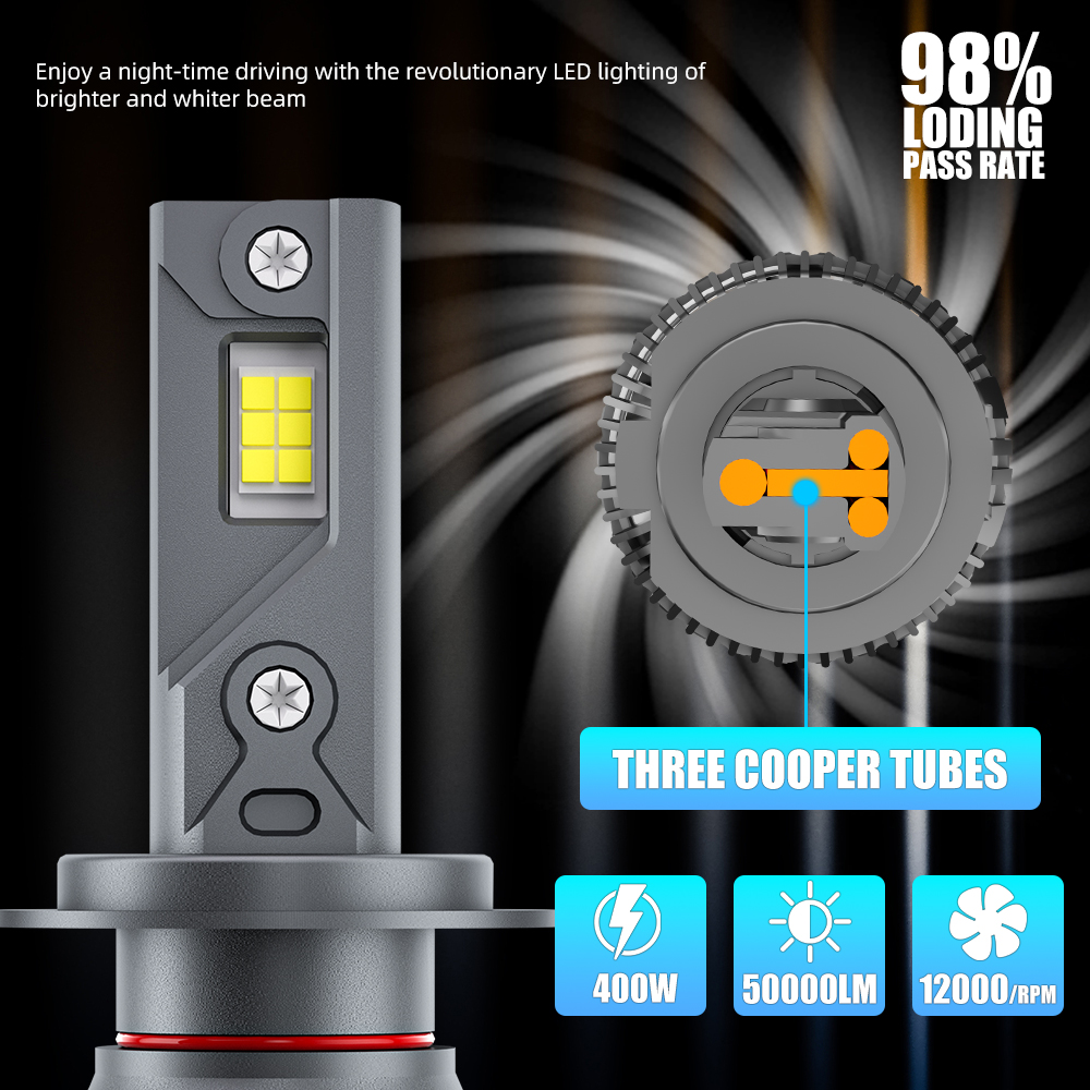 New Model P19 400W 50000LM H4 H7 H11 H13 9004 9007 High Power Three Copper Pipes Super Bright H4 Led Headlight