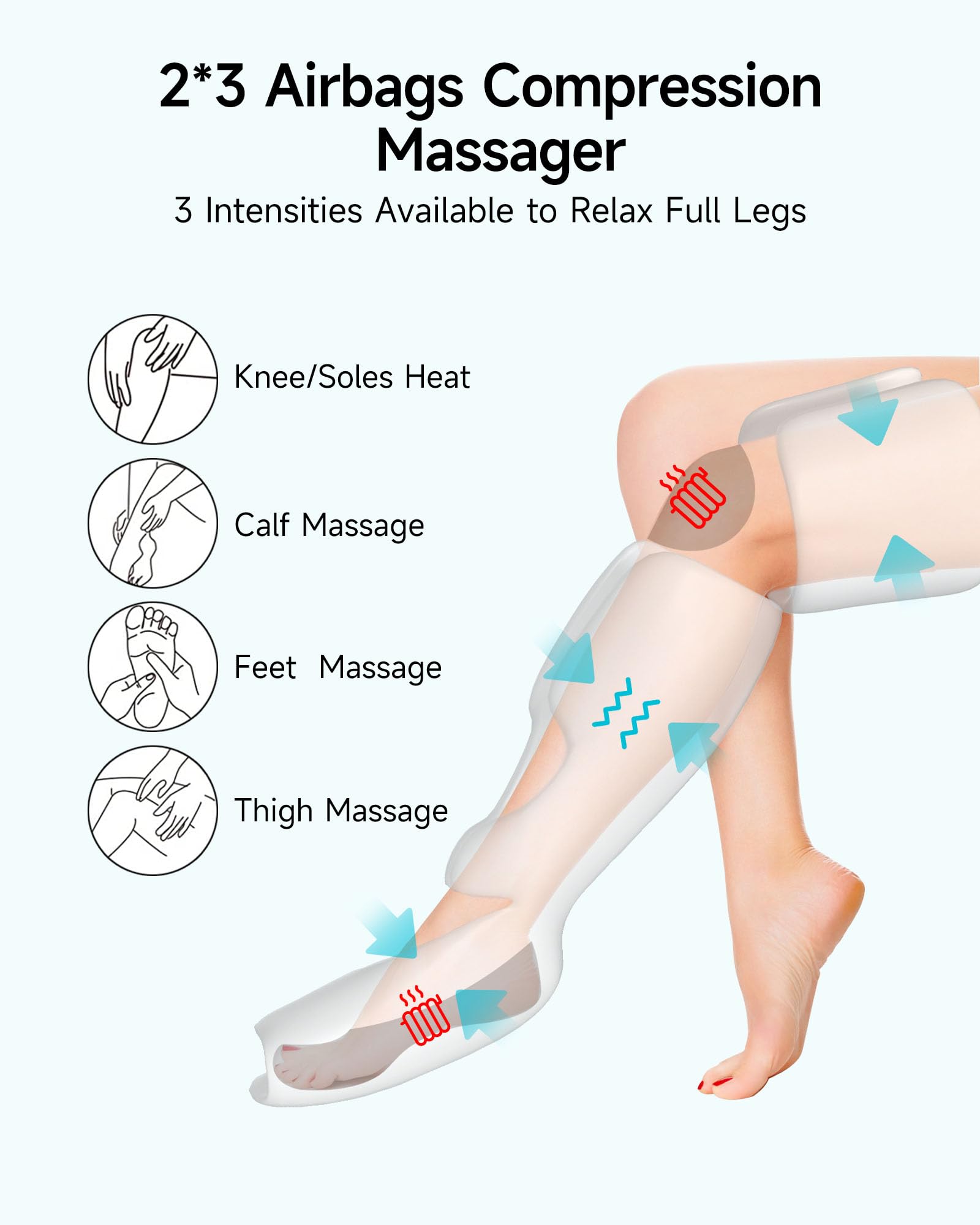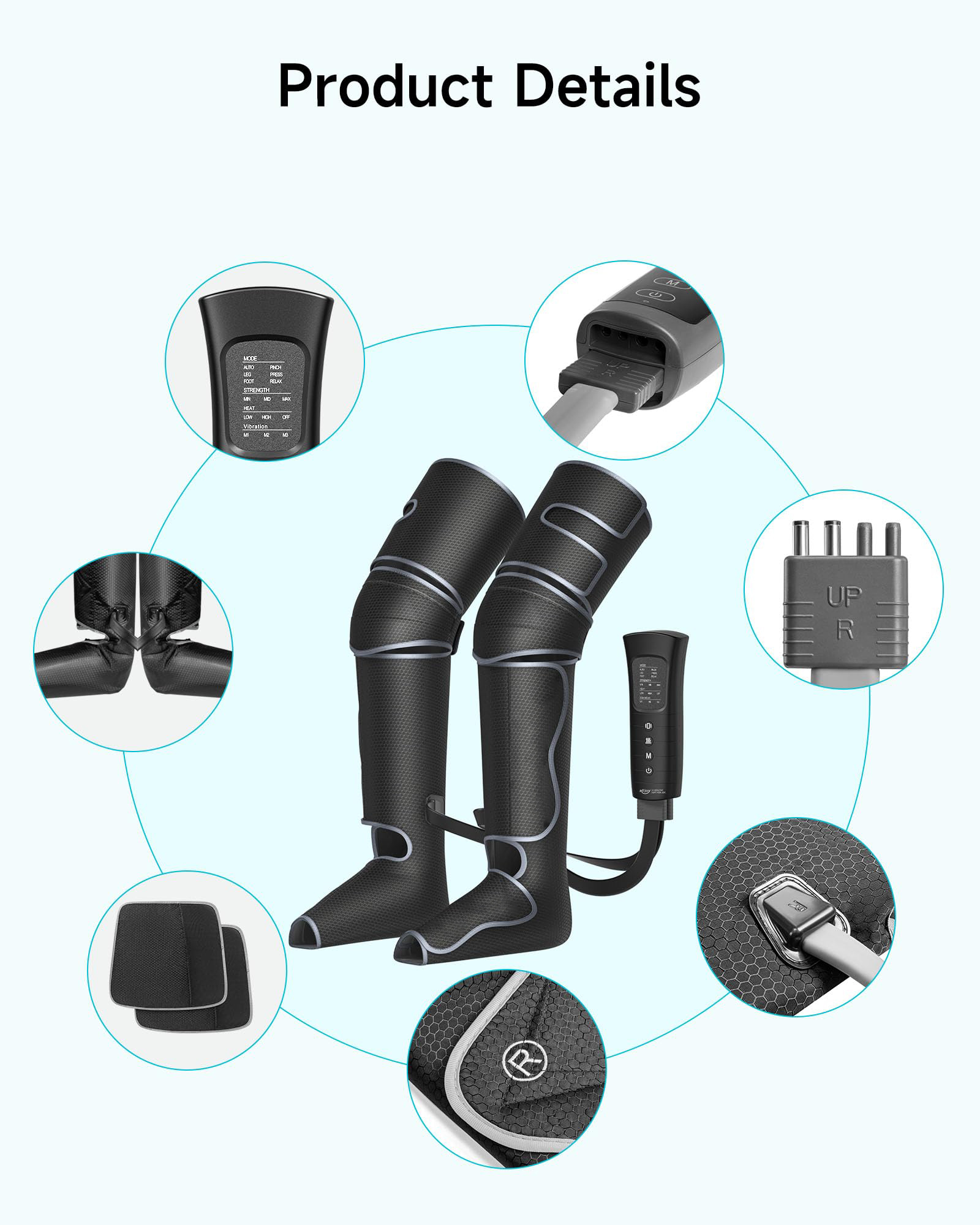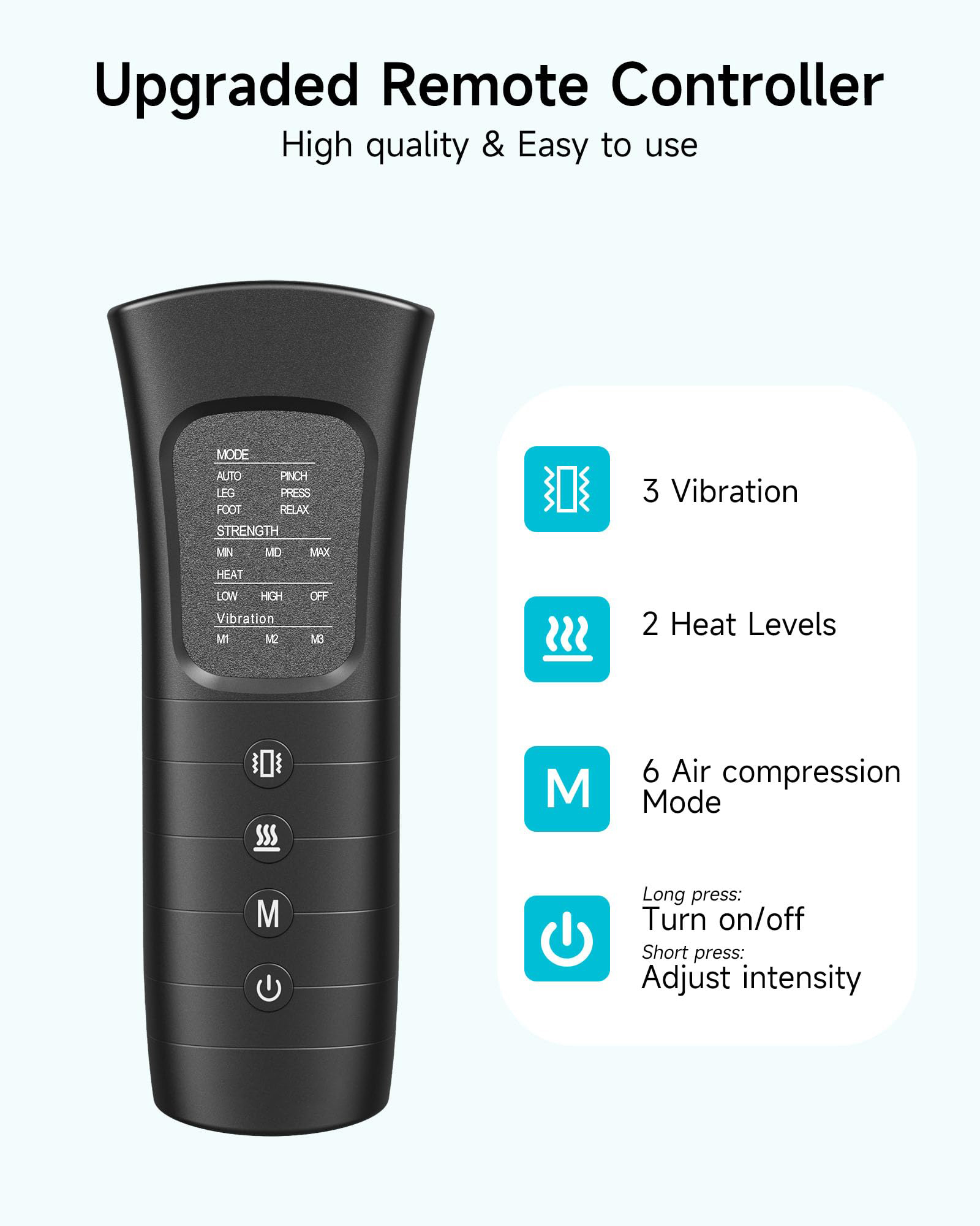 7.SELECTABLE MODES AND COMPRESSION INTENSITY - The controller has 3 Intensity Levels and 6 Modes selectable, you can choose a setting for an optimal relaxation experience.