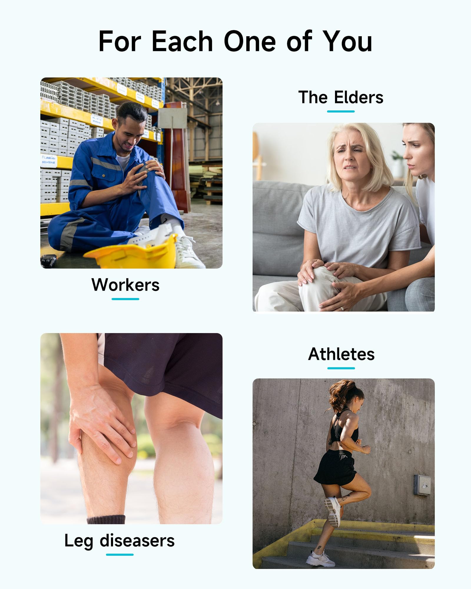 8.ADJUSTABLE LEG WRAPS SIZE - The calf circumference of the leg wraps can be up to 21 inches. The 2 compression leg wraps are made of high grade finely sewn fabric.
