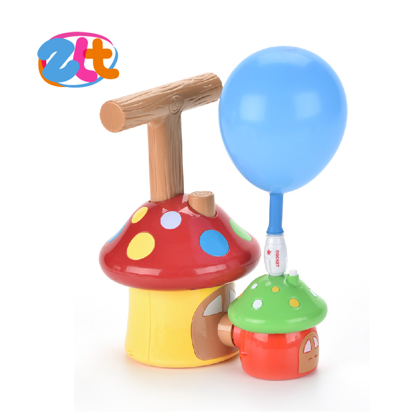 3.How to play the rocket: install the inflatable rod, assemble the balloon, rocket and little mushroom together, install the little mushroom at inflatable inlet, inflate the balloon, press the switch and the rocket will fly.