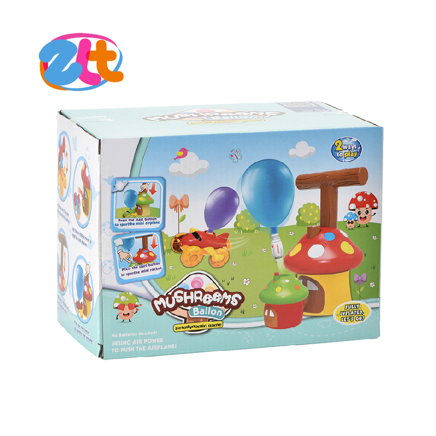 1.One box contains 1set mushroom launcher, 2pcs slide plane, 2pcs rocket, 12pcs balloon.