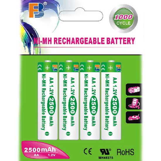 This Ni-MH AA rechargeable battery boasts a capacity of 2,500mAh for high performance. The 1,000-cycle design saves your costs of buying a new one. This heavy-duty Ni-Mh AA rechargeable battery is suitable for powering cameras, music players and so on.