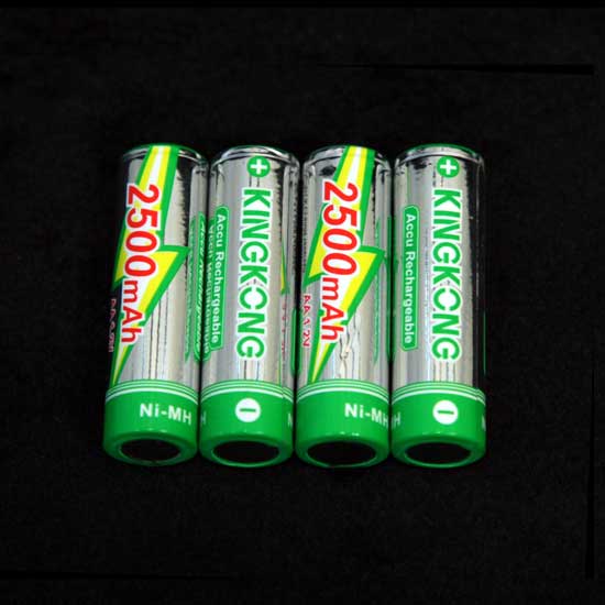 This Ni-MH battery flaunts a 2,500mAh capacity for exceptional performance. It is encompassed with green, silvery, yellow and red toned coatings to ensure safety. This high-quality AA battery is also rechargeable for recycled use.