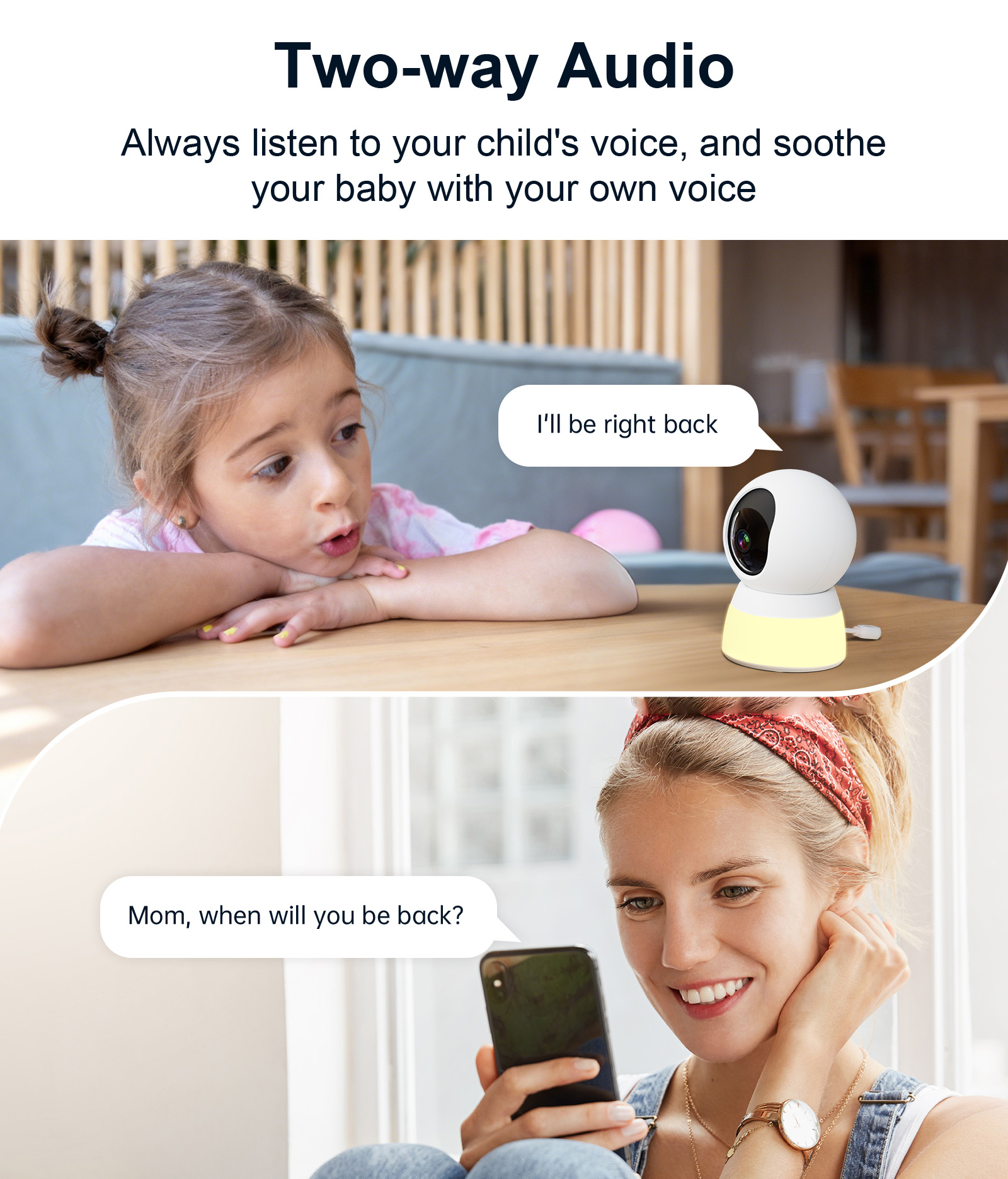 Listen to your child’s voice at any time, and soothe your baby with your own voice—making remote interaction more caring.