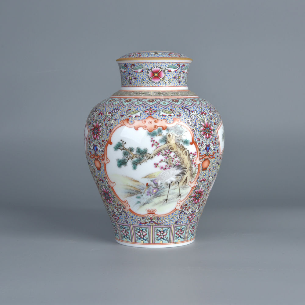 No.19 Famille Rose Decoration Tea Caddy With Jinfuyannian
