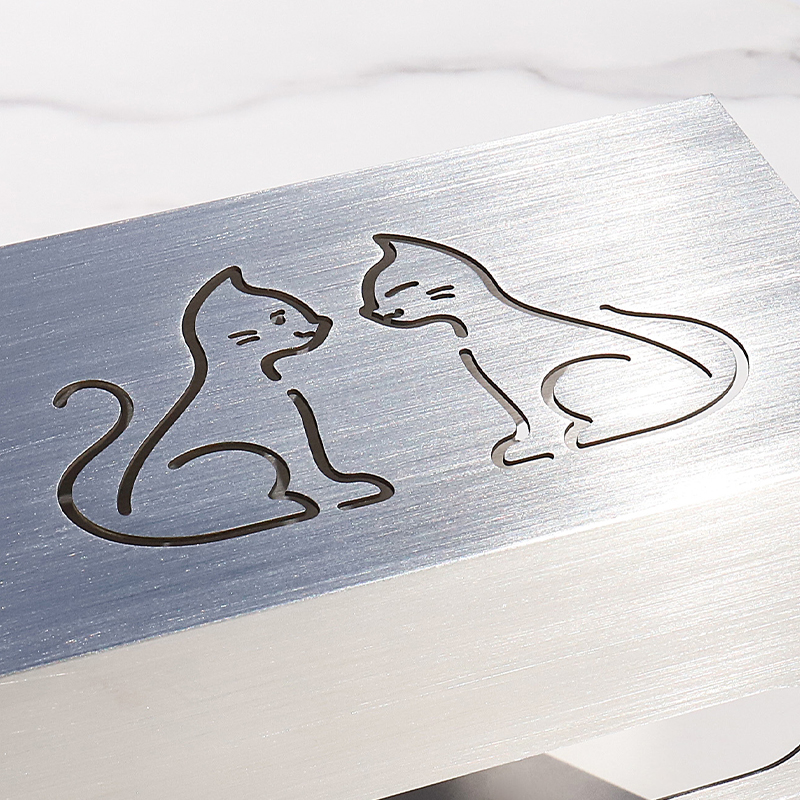 Made of stainless steel, it is durable and easy to clean. The hollow pattern of two cats features concise lines and full of childlike fun.