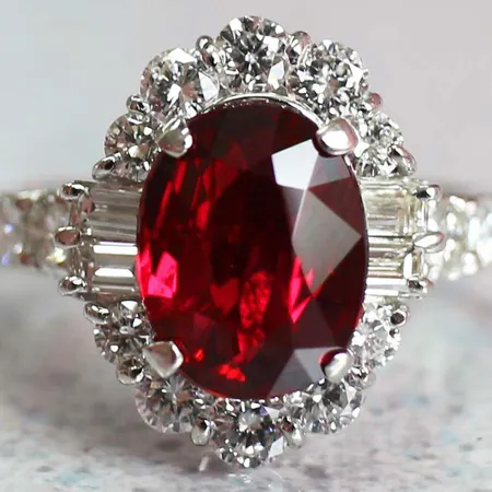 No-heated, pigeon blood color set in platinum 900 with fine quality diamonds