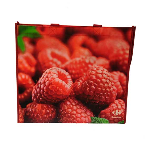 This shopping bag boasts a vibrant-colored print of raspberries, bringing out a fresh and invigorating look. The non-woven bag is finished with a pair of straps for carrying. This square-shaped bag is your best partner for grocery shopping.